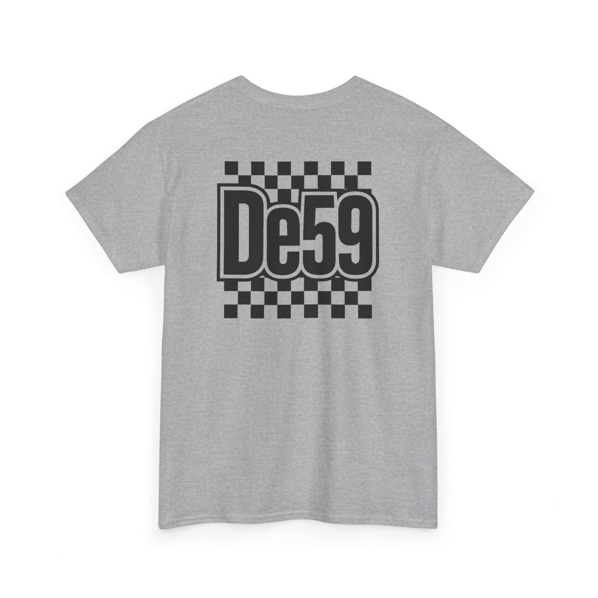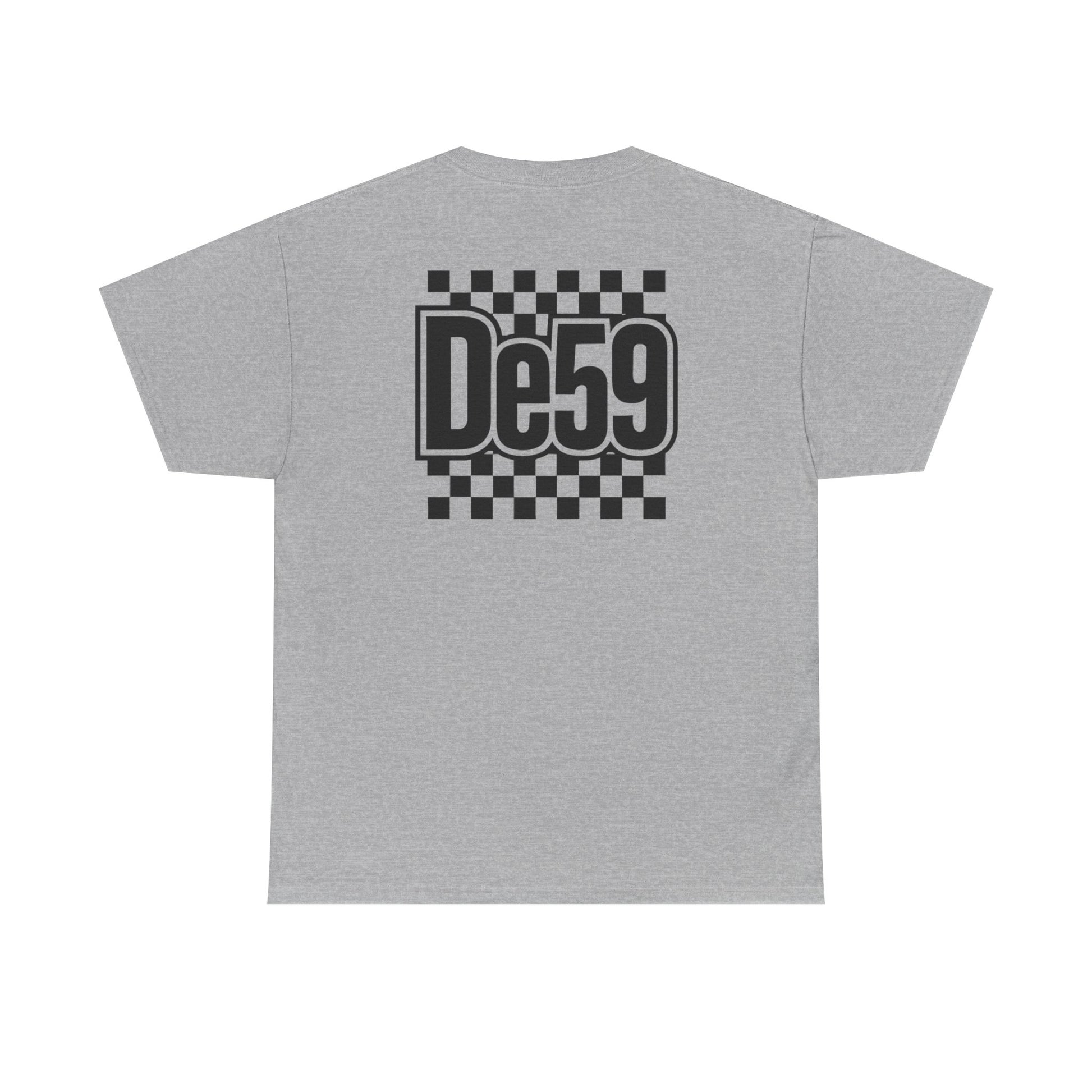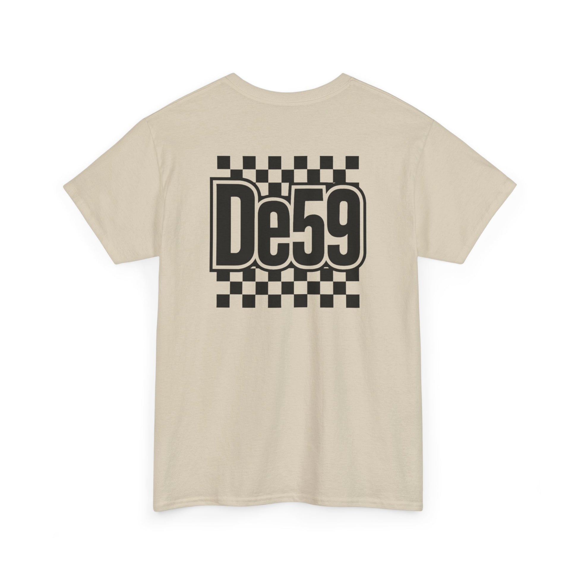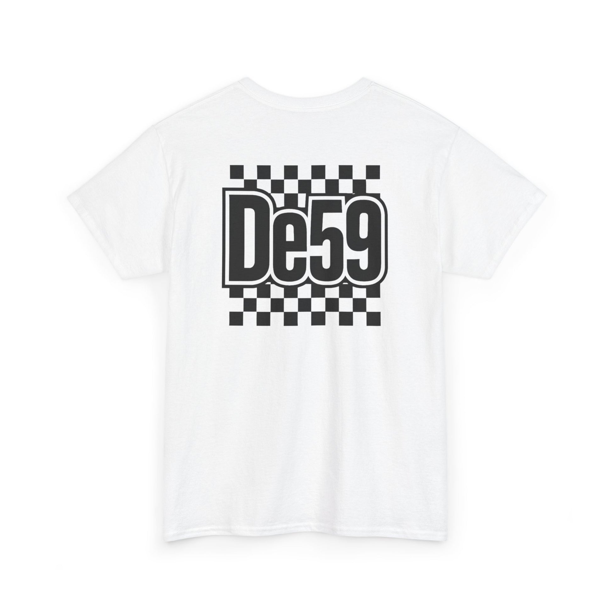 This classic crew tee carries a bold, retro-racing vibe with a crisp black-and-white checkerboard motif and a strong, stylized “De59” mark on chest and back. Lightweight but sturdy cotton sits close to the body without clinging, so it layers easily under jackets or stands alone with jeans. The design reads like a nod to underground race culture and skate influence — confident, nostalgic, and slightly rebellious. Wear it to rides, meet-ups, or when you want a clean graphic that anchors a relaxed outfit. The feel is straightforward: durable, breathable cotton with a sharp, graphic attitude that slips into everyday wear and event nights with equal ease.