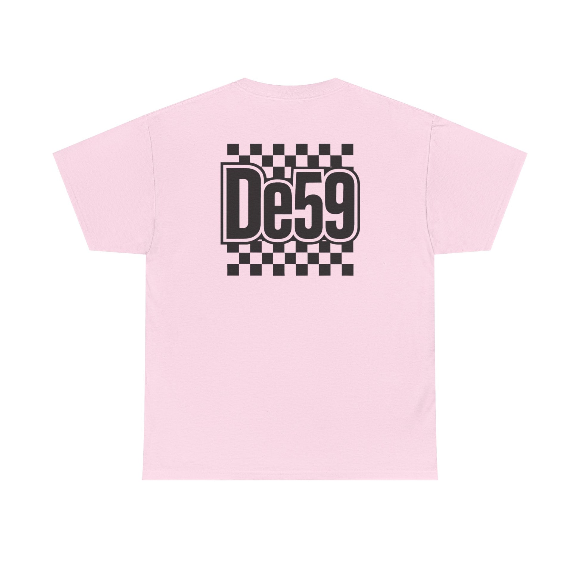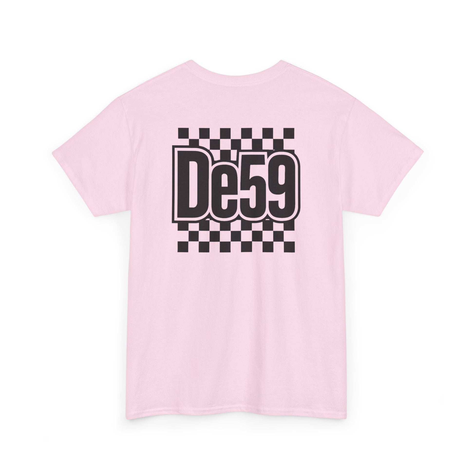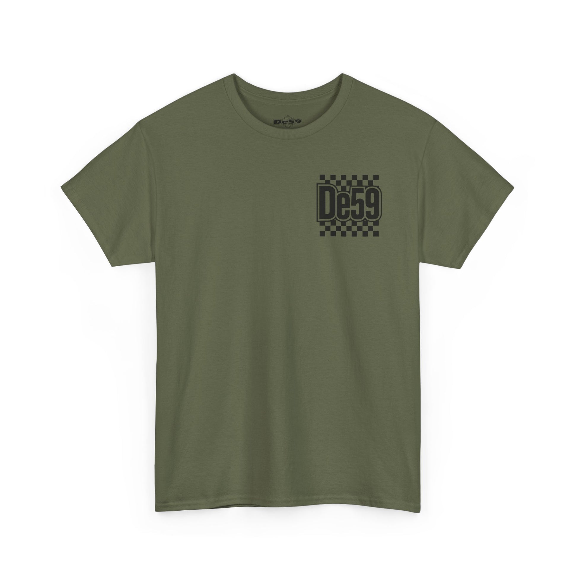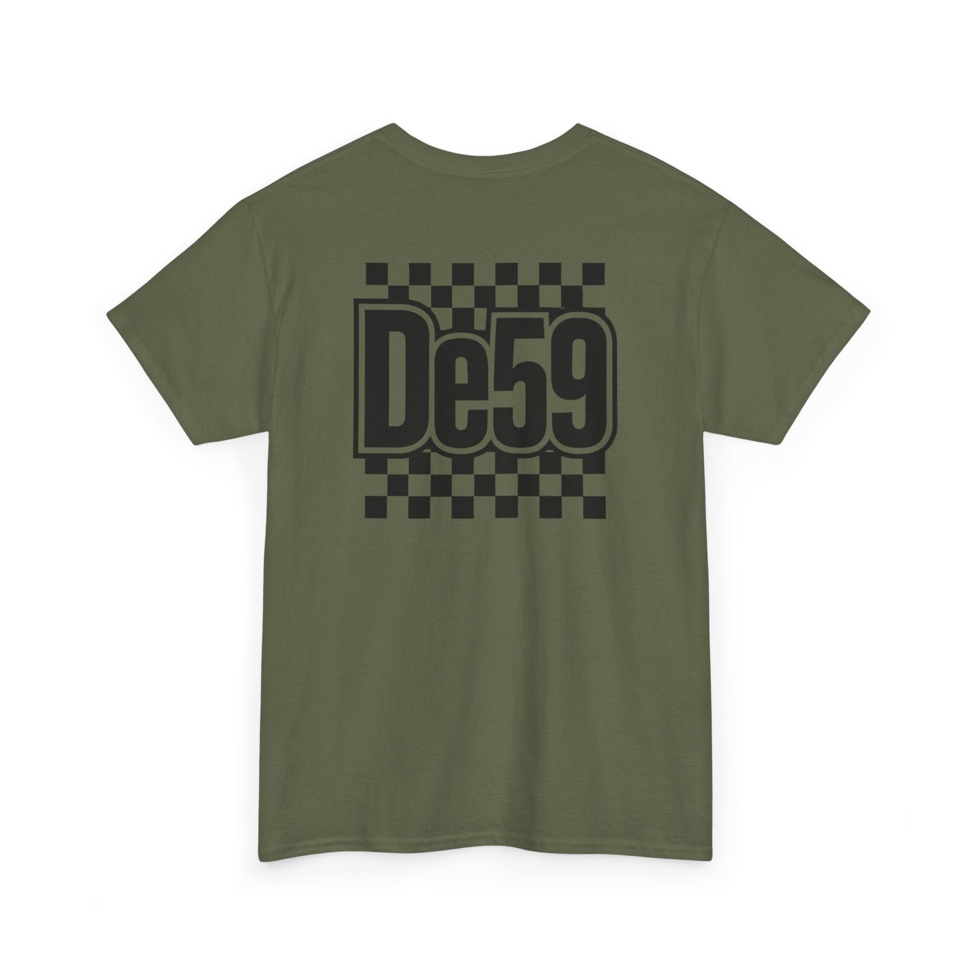 This classic crew tee carries a bold, retro-racing vibe with a crisp black-and-white checkerboard motif and a strong, stylized “De59” mark on chest and back. Lightweight but sturdy cotton sits close to the body without clinging, so it layers easily under jackets or stands alone with jeans. The design reads like a nod to underground race culture and skate influence — confident, nostalgic, and slightly rebellious. Wear it to rides, meet-ups, or when you want a clean graphic that anchors a relaxed outfit. The feel is straightforward: durable, breathable cotton with a sharp, graphic attitude that slips into everyday wear and event nights with equal ease.